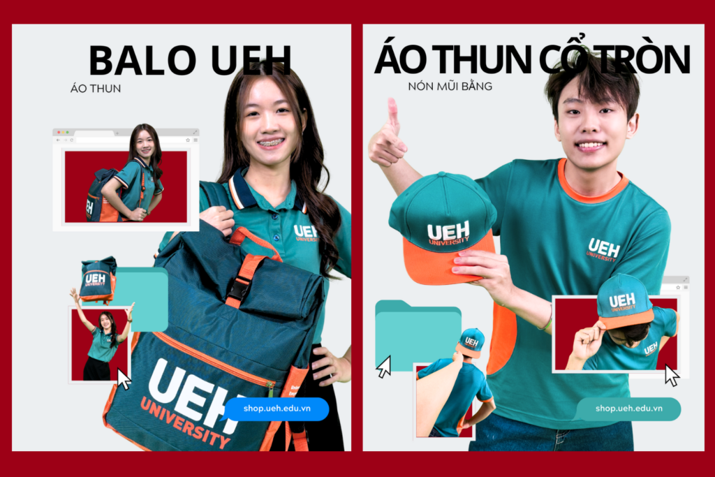 • Balo UEH – thiết kế tiện dụng, cá tính, mang hình ảnh UEH theo suốt những chặng đường học tập và sự nghiệp tiếp theo.